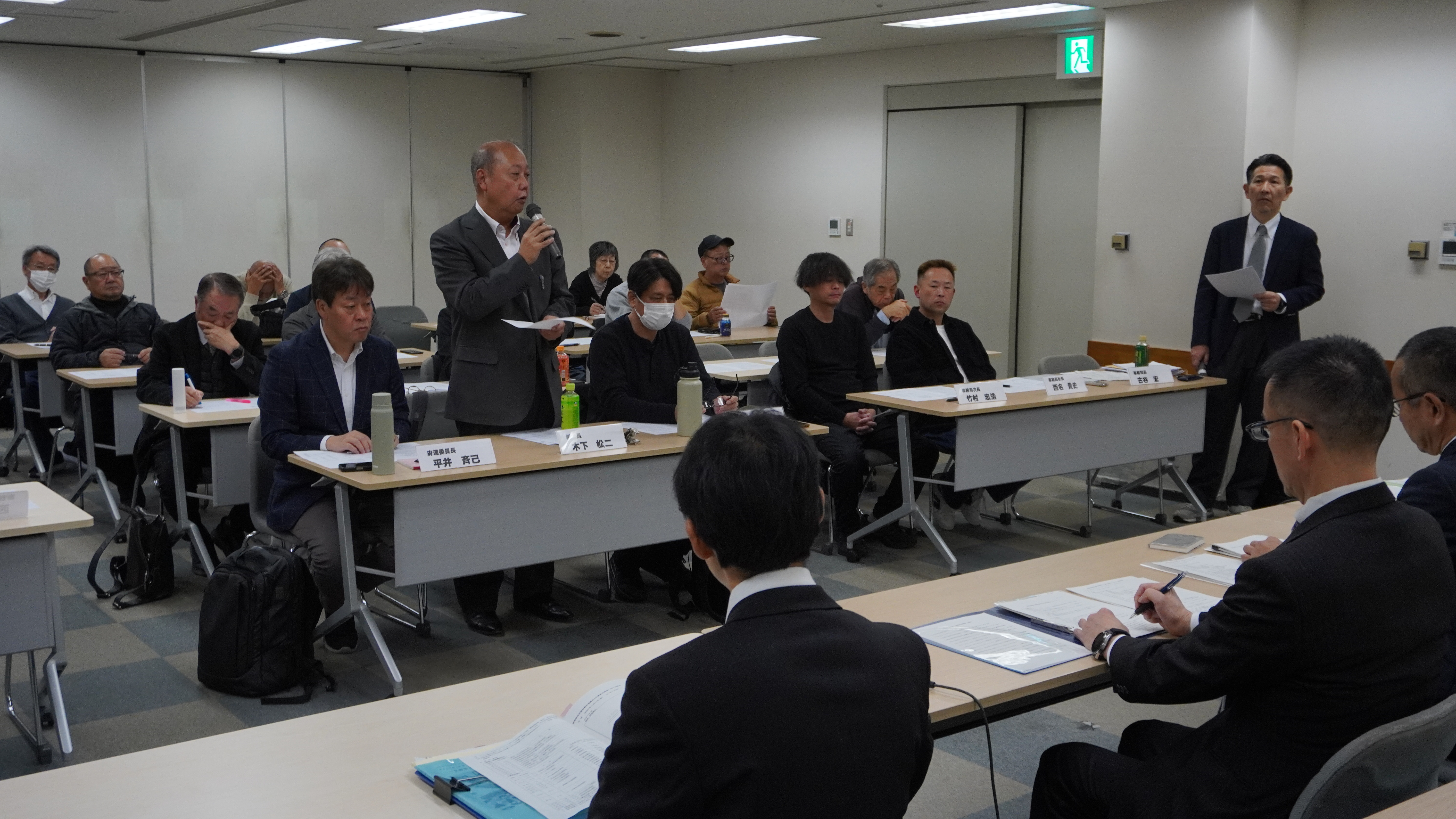 11月21日(金)、部落解放同盟京都市協議会と京都市各部局との意見交換会が京都市中京区のハートピア京都で開催されました。市協からは役員、支部代表として19人、府連から3人、京都市からは各部局・課を代表して入退出入れ替わりで17人が参加しました。 はじめに京都市協議会を代表して、木下松二議長が「高市早苗新政権が発足し、古い体質が刷新されるかに見えたが、安倍政権を引き継ぐ路線では格差が広がり、弱者に一層の負担がかかるのではないかと危惧する。部落の貧困対策は、安定層の流出を招いたが、知識のないまま出ていった人間は自分たちの子どもに部落であることを伝えられないまま、若い層が結婚などに際し、唐突に差別の現実に直面するという事態を招いている。啓発の必要性が痛感させられつつ、形骸化している現実もあり、本日は根本的に部落問題を解決するという視点で忌憚のない意見交換をおこなっていきたい」と挨拶しました。続いて、京都府連から平井斉己委員長が「私たちはそれぞれの地域に責任を持つ団体であり、行政、京都市とも目指す方向は一緒である。しかし法律が切れてからこの間、ボタンの掛け違いが生じ、まちづくりが足踏みしている事態も散見される。共に乗り越えていくべく胸襟を開いた話し合いが大切」と挨拶。