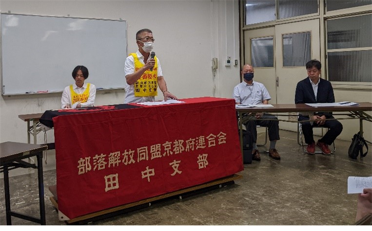 主催者を代表し梅井義行支部長から、「コロナ禍により、3年ぶりの総会を開催することができた。昨年は、水平社創立100年、支部結成から100年と全国水平社宣言の精神を原点にしながら、部落解放運動の展望を切り拓くため闘い抜くことを、兄弟姉妹と確認することができた。引き続き、支部結成以来の闘いの歴史を受け継ぎ、部落解放、人間解放の崇高な使命を自覚しながら、一丸となって、三大闘争勝利に向けて奮闘していく事をお願いしたい。」と述べられました。