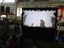 前半は、バンド演奏やこどもたちのダンスが披露され、7時過ぎからは、盆踊り保存会の方から江州音頭のステップの踏み方・掛け声のかけ方などを教わりました。午後今回初めての試みで、インドネシアの伝統芸能である影絵芝居「ワヤン」が実演されました。動物たちや神様の影が大きくなったり小さくなったり、劇中の楽しい会話もはずんで、こどもたちも演目を楽しんでいました。 午後8時には「こどもみこし」が、かけ声とともに会場をめぐりました。