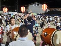 その後、ステージには、千本盆踊り保存会の皆さんが登場し、太鼓2台に4名の打ち手、威勢のいい歌い手(音頭取り)の先導で江州音頭が始まりました。「楽只小学校の校歌バージョン」をかわきりに「買い物ブギ」など生の歌声が会場に響き渡り、ステージ前には最初から人だかりができて、だんだんと踊りの輪に入って、皆さん楽しそうにノリノリで踊って、思い出に残る夏の夜となりました。
